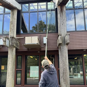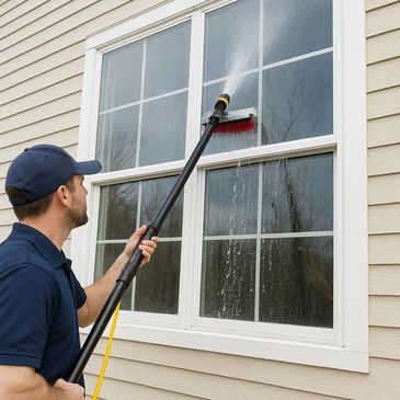 We clean your windows by hand and with aid of water fed pole. We service each window meticulously detailing all bird, bug, dirt, and organic material from the glass.